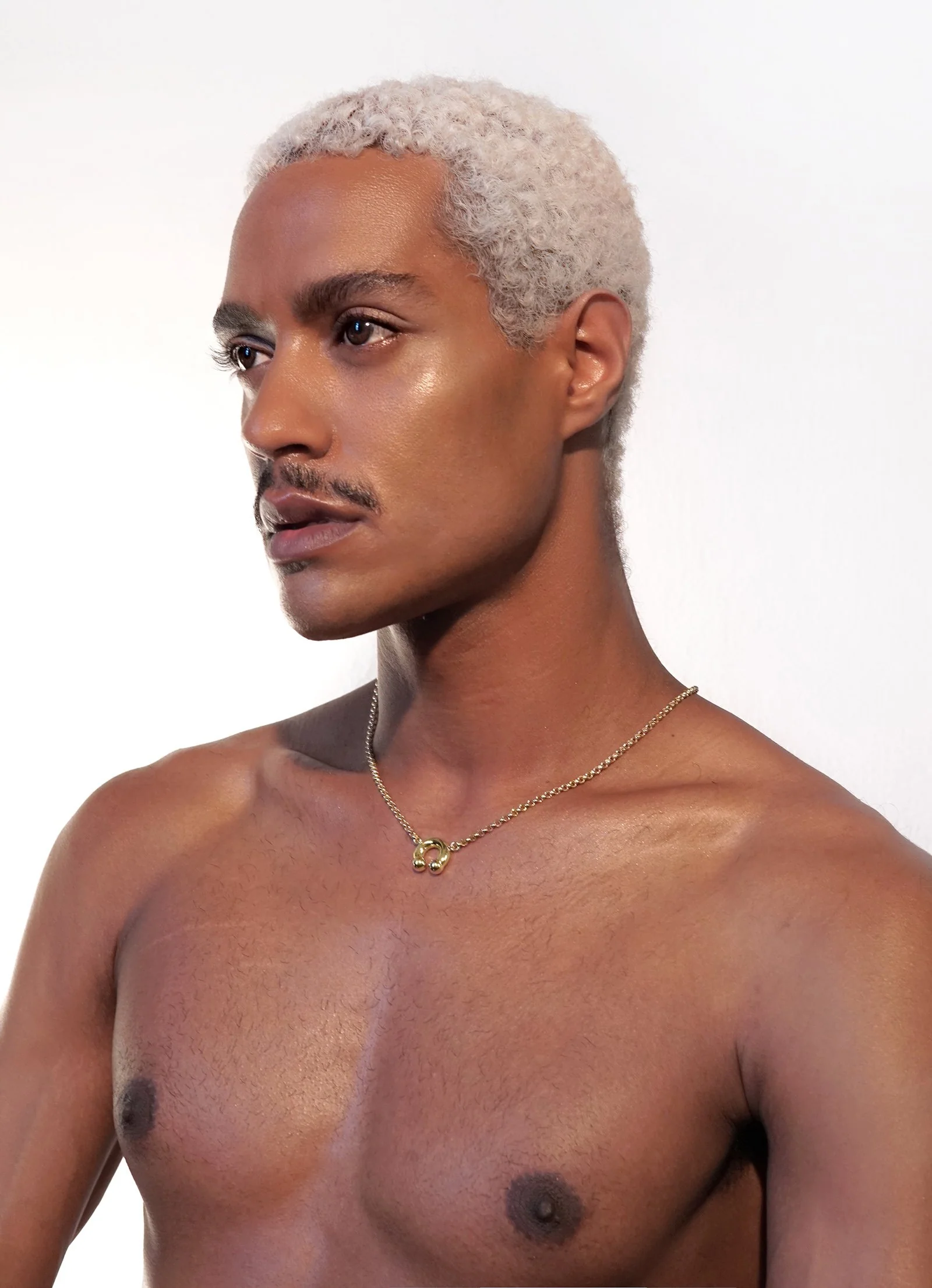 THE PRINCE ALBERT NECKLACE FEATURES A HORSESHOE PIERCING PENDANT SITTING ON A ROUND CABLE CHAIN. CHAIN LENGTH MAY BE ADJUSTED.