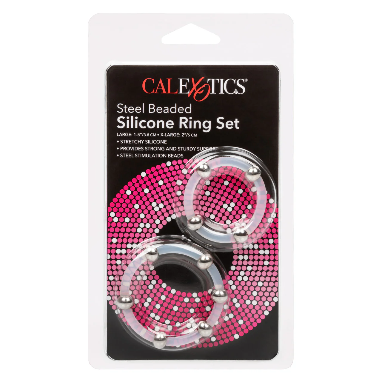 The passionate Steel Beaded Silicone Ring Set is made to enhance, escalate and intensify ecstasy. The stretchy, yet sturdy silicone rings squeeze for strong support, while the stainless steel beads intensify pleasure